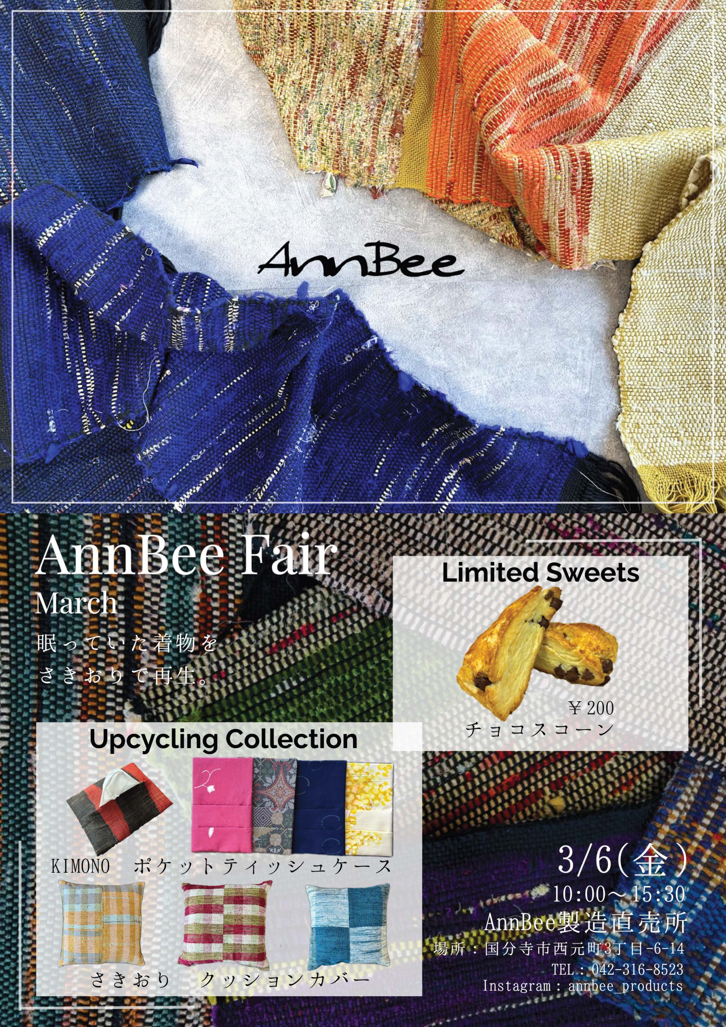 2026 年 2 月 20 日公開 AnnBeeフェア 3月AnnBeeフェア開催 3月6日(金) 10時~15時 AnnBeeフェア開催 2月AnnBeeフェア開催 2月6日(金) 10時~15時 AnnBeeフェア開催 11月13日(水)コレド日本橋 コレド日本橋にてAnnBee出店致します。 お菓子は、定番ドーナツ・こくべじドーナツ・カステラキューブ等販売致します。 お近くにお越しの際は、是非お立ち寄りください。